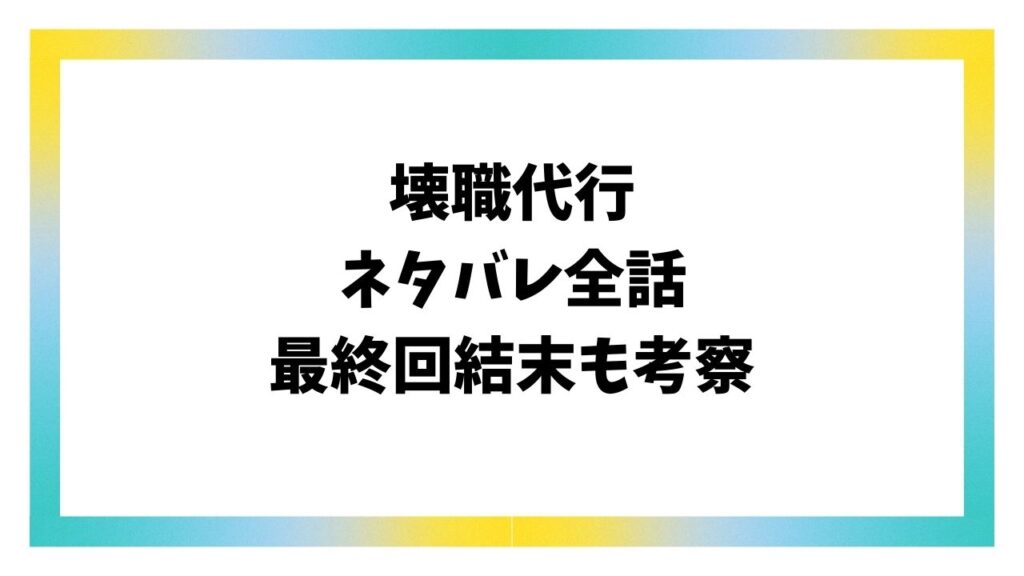 壊職代行ネタバレ全話!最終回結末がどうなるのかも徹底解説