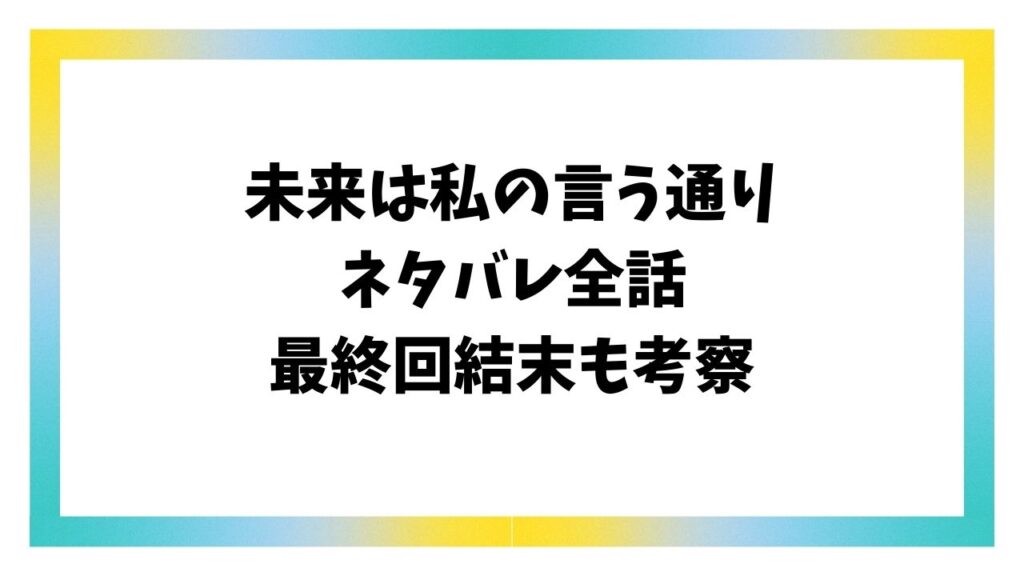 未来は私の言う通り漫画ネタバレ全話!最終回結末はどうなる?