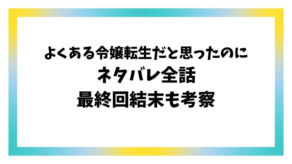 LINEマンガ「よくある令嬢転生だと思ったのに」にハマってしまった方は非常に多いのではないでしょうか。 実は、「よくある令嬢転生だと思ったのに」の原作は韓国の小説が最終回まで出ているんです。 ならば、結末やネタバレが気になっちゃいますよね! み... -