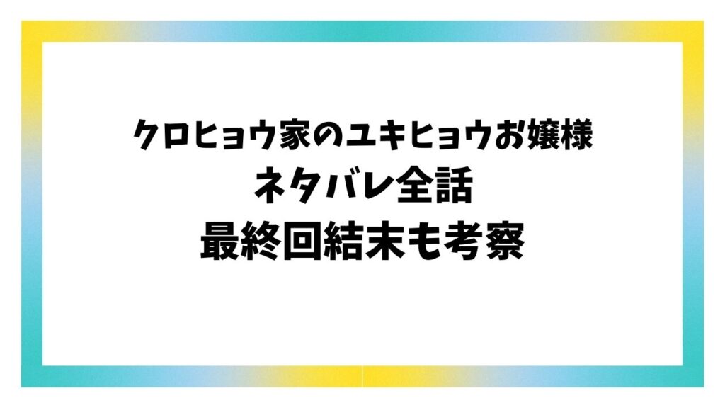 みなさん、ピッコマで話題の「クロヒョウ家のユキヒョウお嬢様」はもうチェックしましたか? 今回は、話題の漫画「クロヒョウ家のユキヒョウお嬢様ネタバレ最終回結末!」をお話していきます! この物語は、悲しい境遇から始まって、愛に満ちた家族と出会... -