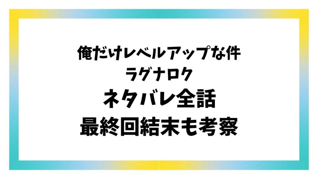 当記事では『俺だけレベルアップな件~ラグナロク~』の原作韓国小説の最終回結末について調査、考察します! 『俺だけレベルアップな件~ラグナロク~』は本編主人公である水篠旬が本編ラストで雫と結ばれ生まれた息子である水篠護が主人公です。 前作の... -