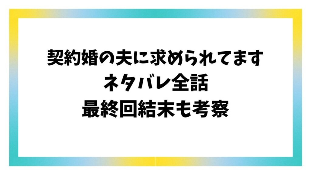 この記事では「契約婚の夫に求められていますネタバレ最終回結末!原作は韓国ではなく中国漫画?」と題してご紹介いたします! 偽の結婚から始まる切ない恋愛物語として多くの読者を魅了している人気漫画。 冷徹な実業家との契約結婚を強いられた主人公が...