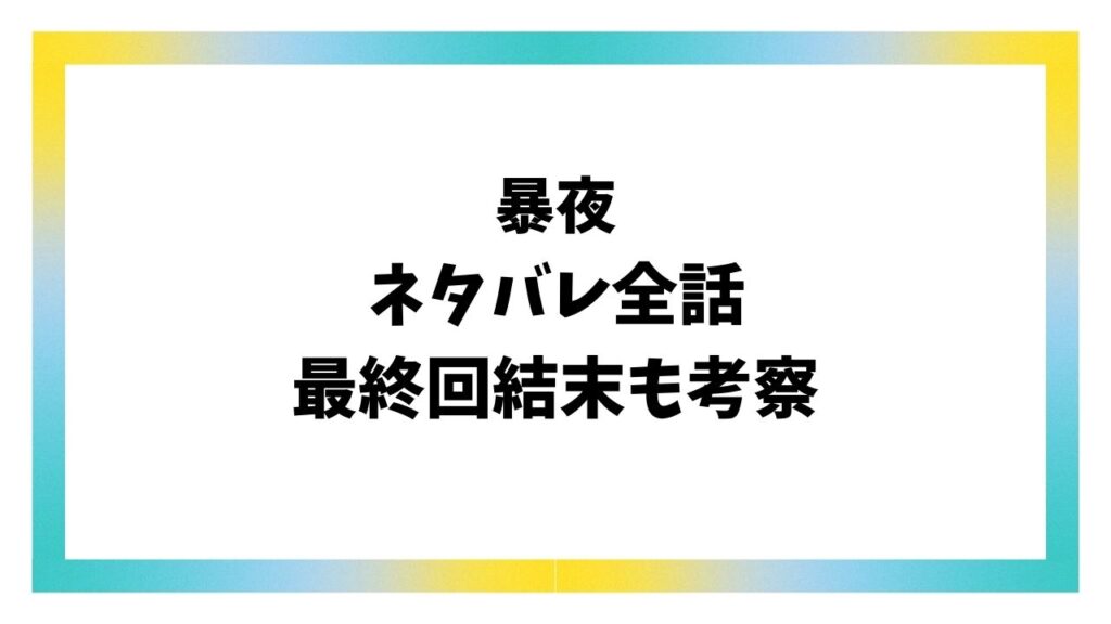 暴夜ネタバレ最終回結末!原作の韓国小説のラストはどうなる?