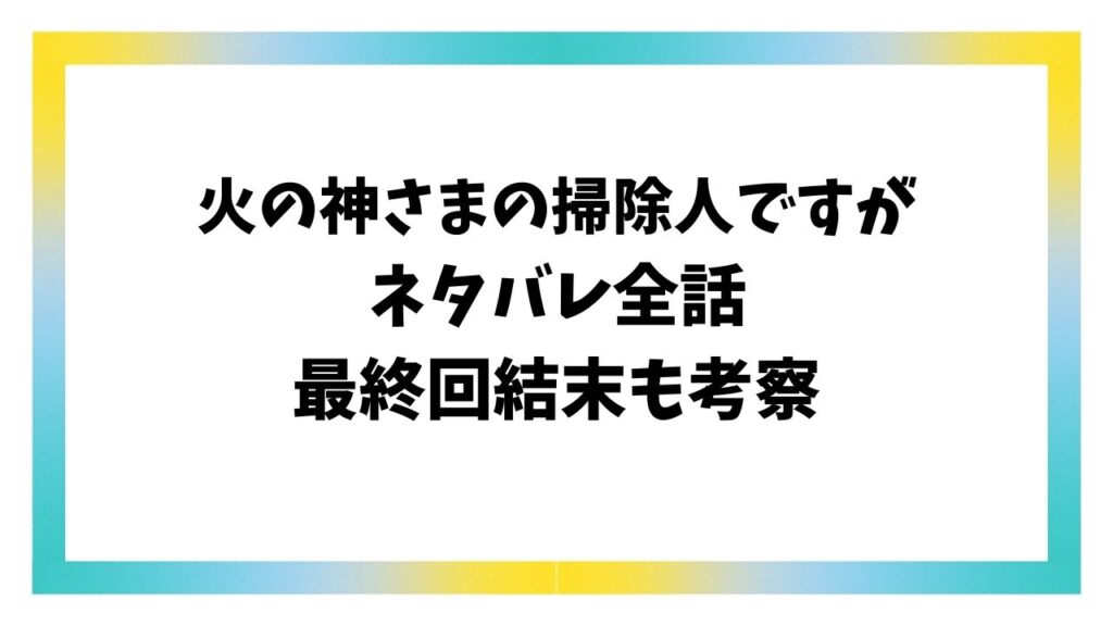 火の神さまの掃除人ですがネタバレ最終回結末!原作はなろう小説?