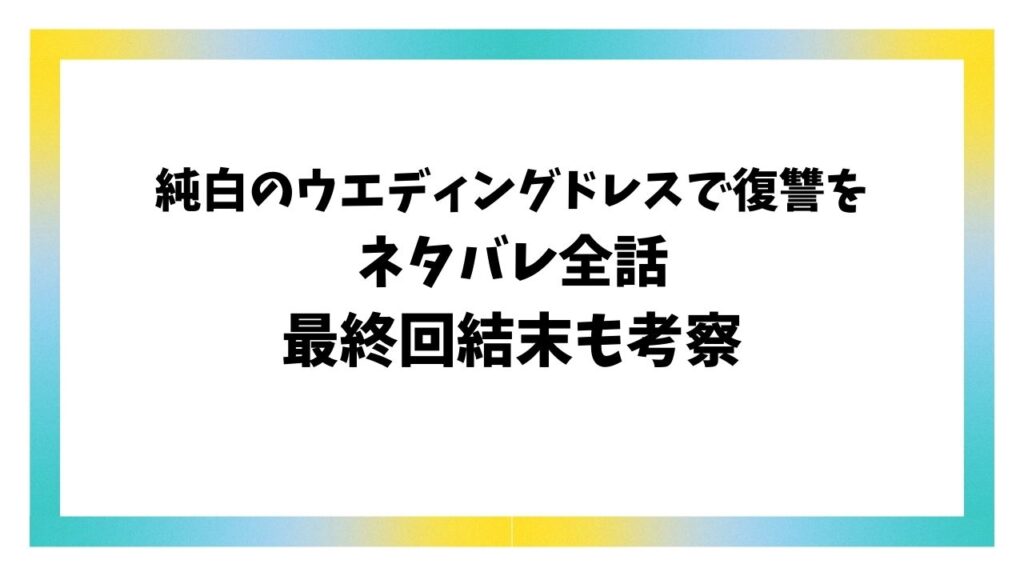復讐が絡むストーリーって、次の展開が気になりすぎて、気づいたら一気読みしちゃった…なんてことありますよね。 今回は、人気復讐系漫画「純白のウエディングドレスで復讐を」についてご紹介します。 めちゃコミックで11話まで無料で読める漫画でもある「... -