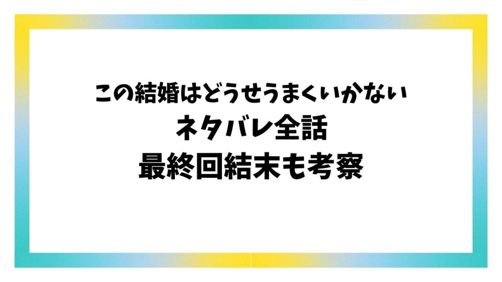 この結婚はどうせうまくいかないネタバレ最終回結末!原作小説のラストはどうなる?