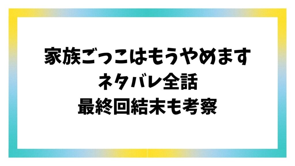 家族ごっこはもうやめますネタバレ最終回結末!原作の韓国小説のラストどうなる?