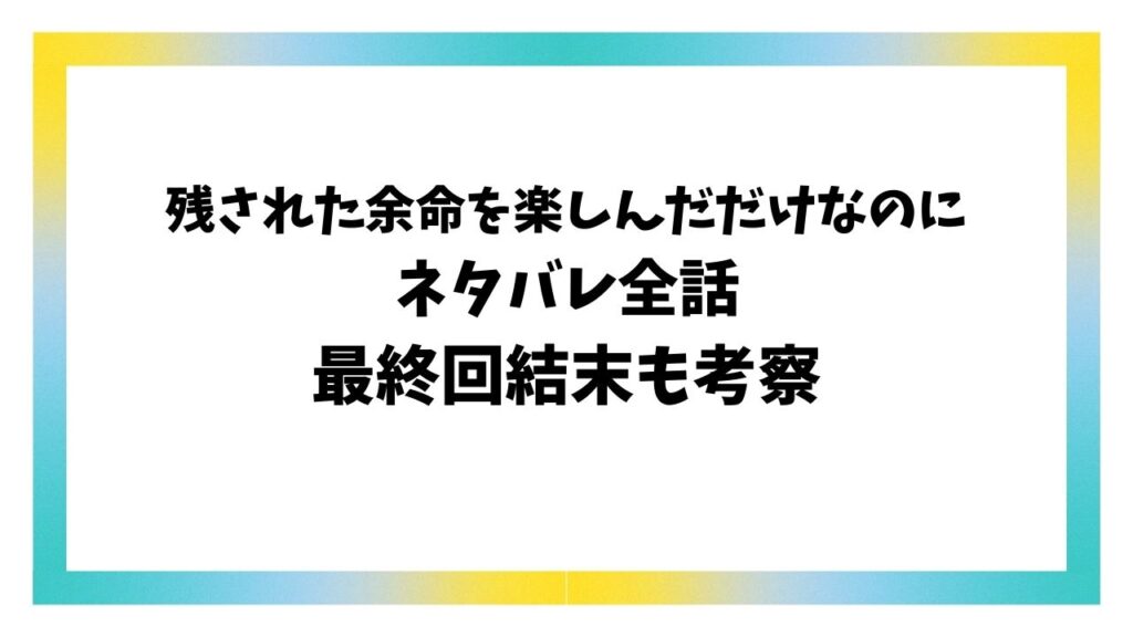 残された余命を楽しんだだけなのにネタバレ最終回結末!韓国小説のラストはどうなる?