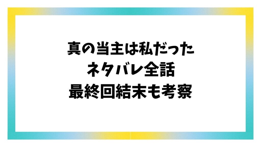 今回は、「真の当主は私だったネタバレ最終回結末!原作の韓国小説のラストはどうなる?」と題してお届けします。 『真の当主は私だった』は韓国小説が原作で、ピッコマで配信されている人気作品です。 ここでは、『真の当主は私だった』の気になるストー... -