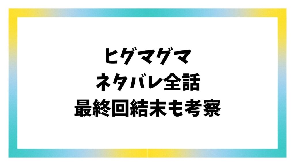 ヒグマグマネタバレ&感想!最終回結末がどうなるかも考察!