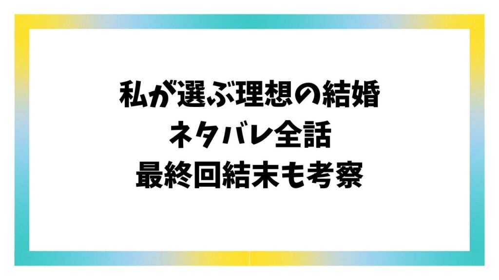 私が選ぶ理想の結婚ネタバレ最終回結末!原作小説のラストはどうなる?