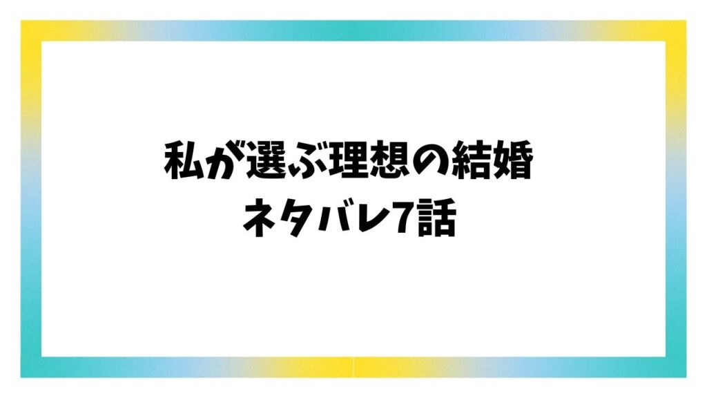 私が選ぶ理想の結婚7話ネタバレ&感想を詳しくご紹介